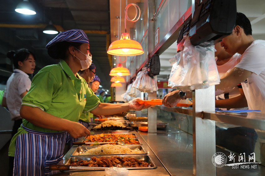 熱鬧的餐廳中,科大的“新鮮血液”們已經(jīng)到了他們的午餐時間,與家人一起在科大的餐廳中吃上來科大的第一頓飯,幸福的笑容寫在他們臉上。為保證新生和家長們順利、開心的用餐,飲食中心在三天前就開始了一系列準備,而今天也是從早上五點就已經(jīng)開始了加工工作。并且今天開放了沁園一、二、清真、接待四個餐廳,并配備有兩名專職監(jiān)督員,監(jiān)控飲食安全與衛(wèi)生,為新生的飲食健康保駕護航。