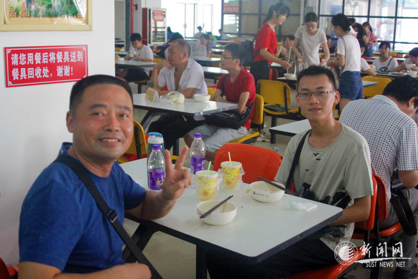 家住河南省的張翼遠早在8月21日就已經(jīng)隨父親到達了學校,提前將開學需處理的事情辦完的他們在食堂正慢慢地品味著校餐?!皝淼娇拼?,我總體感覺是環(huán)境非常不錯,這兒的景美、飯香、人好,給新生的服務也特別周到?!皬埌职珠_心地說道。張翼遠也說:“新的開學,我對自己的要求就是好好學習,最好能拿到獎學金?!?br />