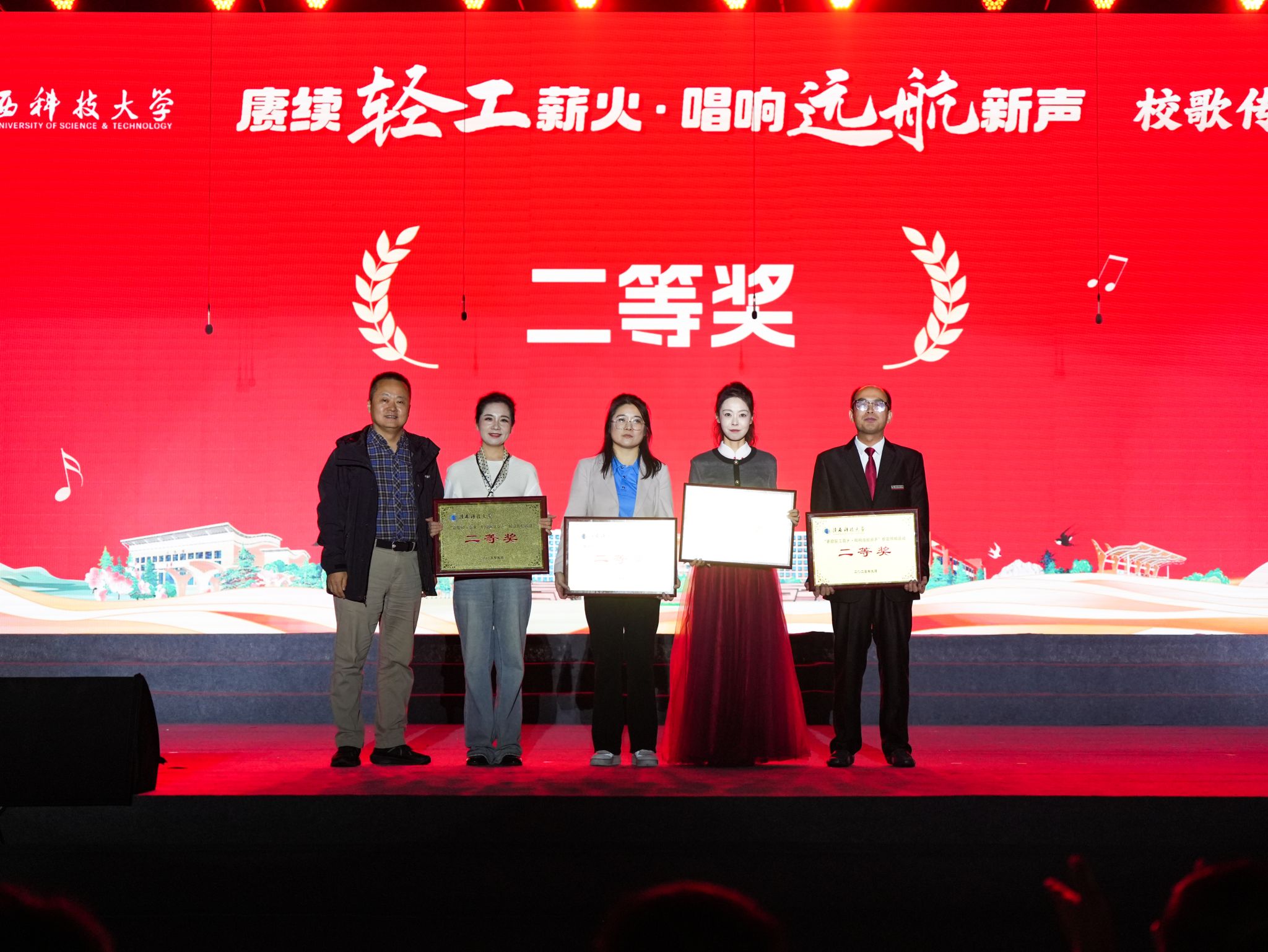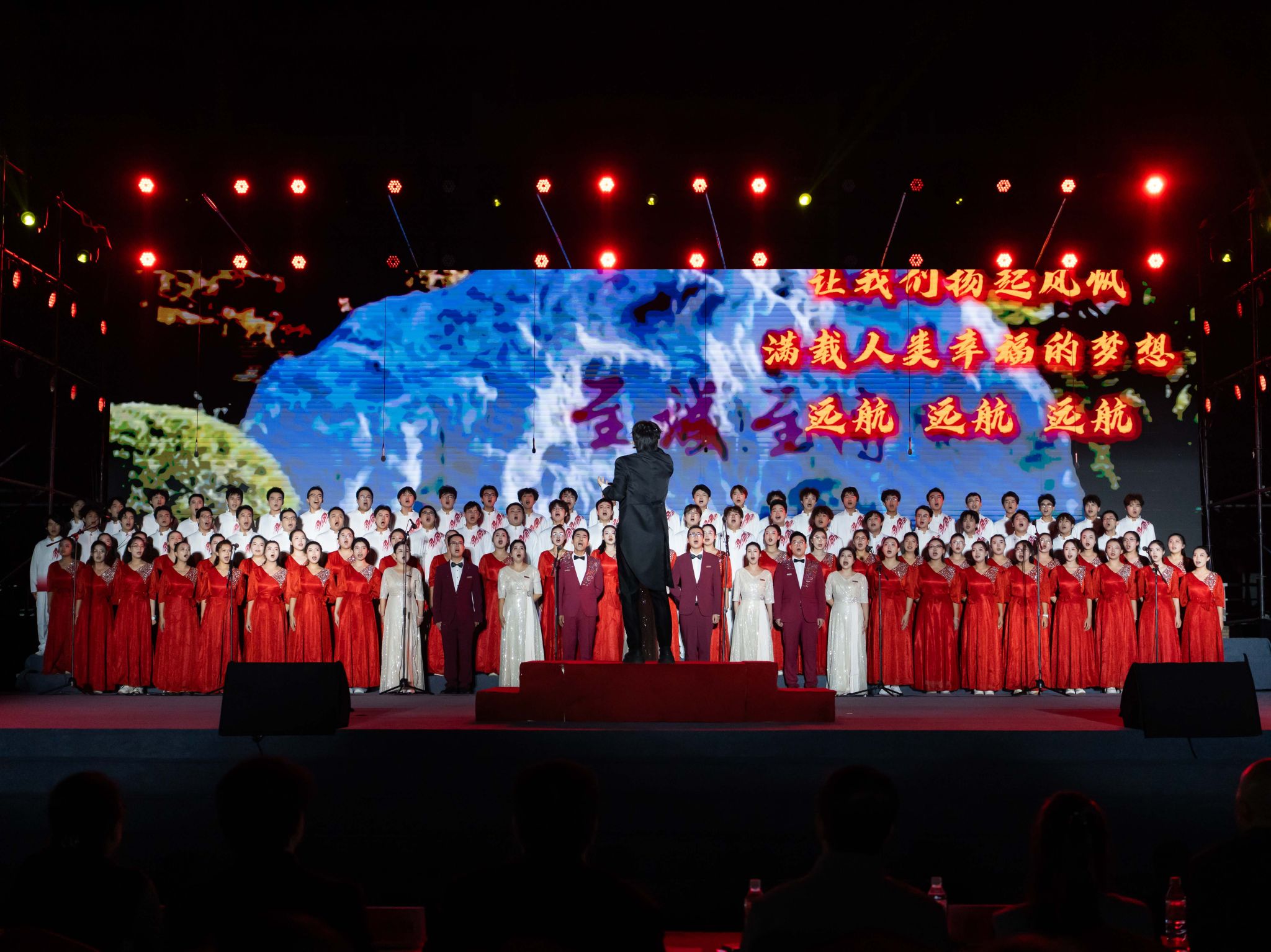 本次活動(dòng)特邀校歌《遠(yuǎn)航》曲作者、西安音樂(lè)學(xué)院作曲系二級(jí)教授陳大明等多位專家及校內(nèi)職能部門代表?yè)?dān)任評(píng)委。由全校15個(gè)學(xué)院師生組成的合唱隊(duì)依次登臺(tái),以校歌《遠(yuǎn)航》為必選曲目,輔以各具特色的自選歌曲,融合朗誦、舞蹈、器樂(lè)、情景表演等多種形式,展現(xiàn)各學(xué)院賡續(xù)輕工薪火、凝聚師生力量的價(jià)值追求,用嘹亮歌聲凝聚起砥礪輕工報(bào)國(guó)、矢志“雙一流”建設(shè)的磅礴力量。