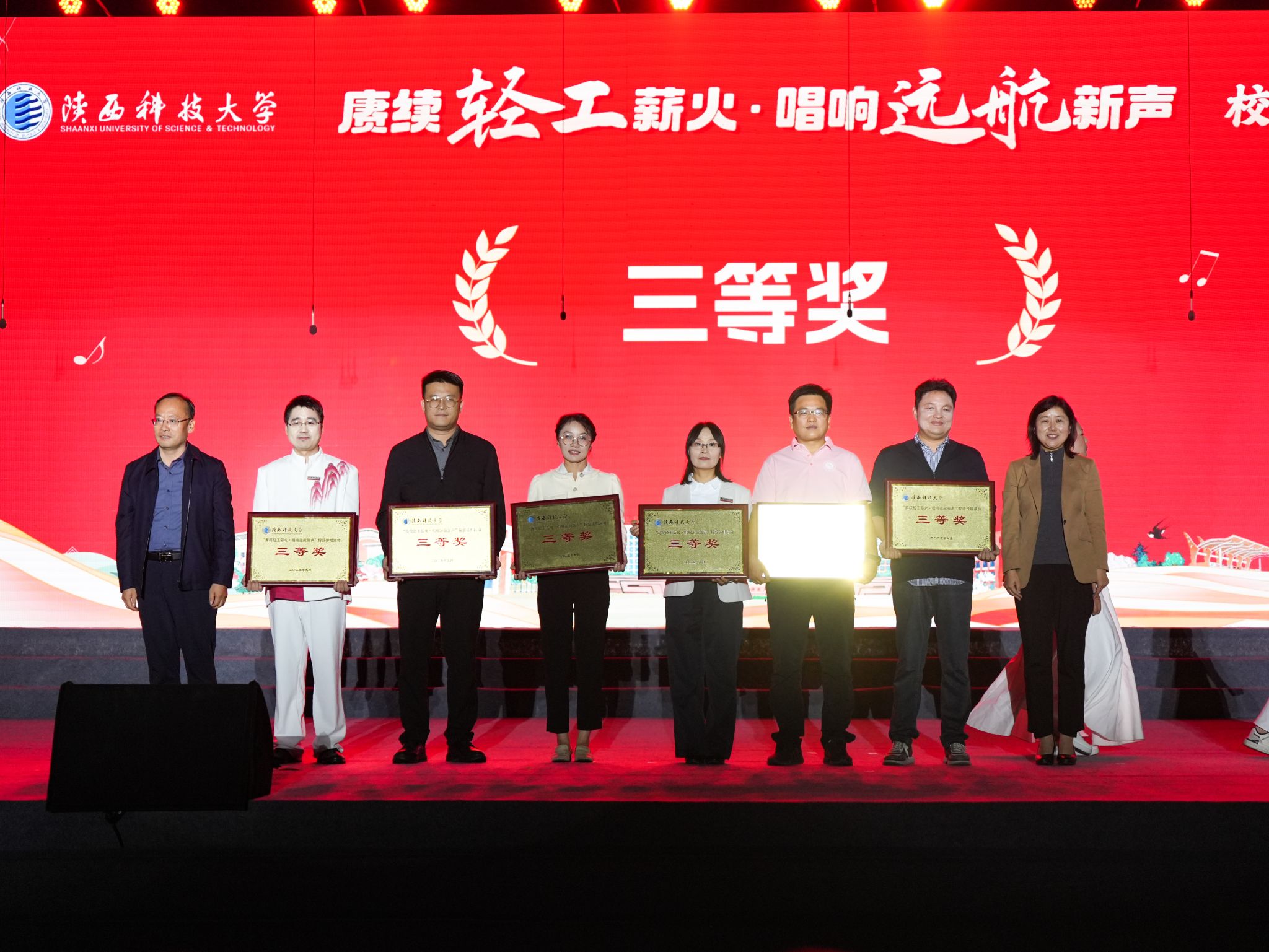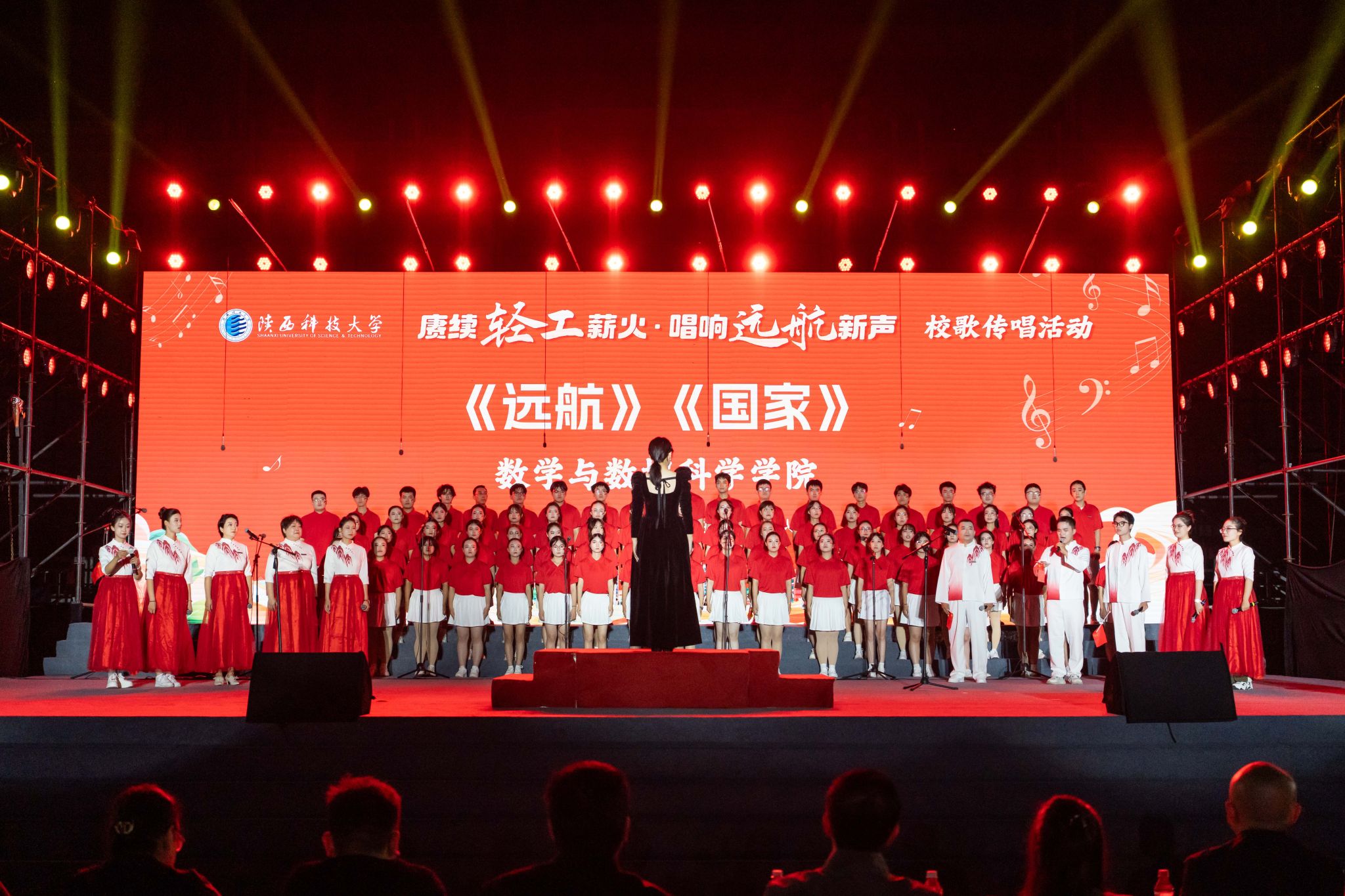 為慶祝中華人民共和國(guó)成立76周年,涵育校園文化、弘揚(yáng)大學(xué)精神,9月29日晚,陜西科技大學(xué)在田徑場(chǎng)舉行“賡續(xù)輕工薪火·唱響遠(yuǎn)航新聲”校歌傳唱活動(dòng)。黨委書記樊建武,校長(zhǎng)黃劍鋒,黨委副書記李學(xué)軍,副校長(zhǎng)黃海峙、馬力,與各學(xué)院師生代表、2025級(jí)新生共同參與活動(dòng)。