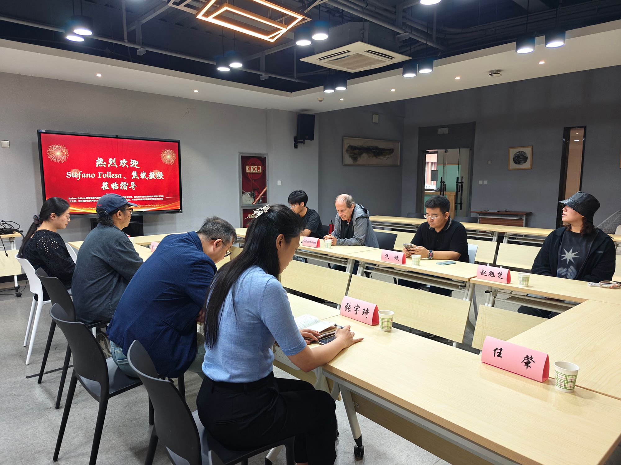 9月4日,意大利佛羅倫薩大學(xué)Stefano Follesa教授、鄭州航空工業(yè)管理學(xué)院焦斌副教授一行來我校設(shè)計(jì)與藝術(shù)學(xué)院(絲路文化與傳播學(xué)院)交流座談,設(shè)藝學(xué)院院長劉宗明、副院長米高峰及相關(guān)教師參加座談。