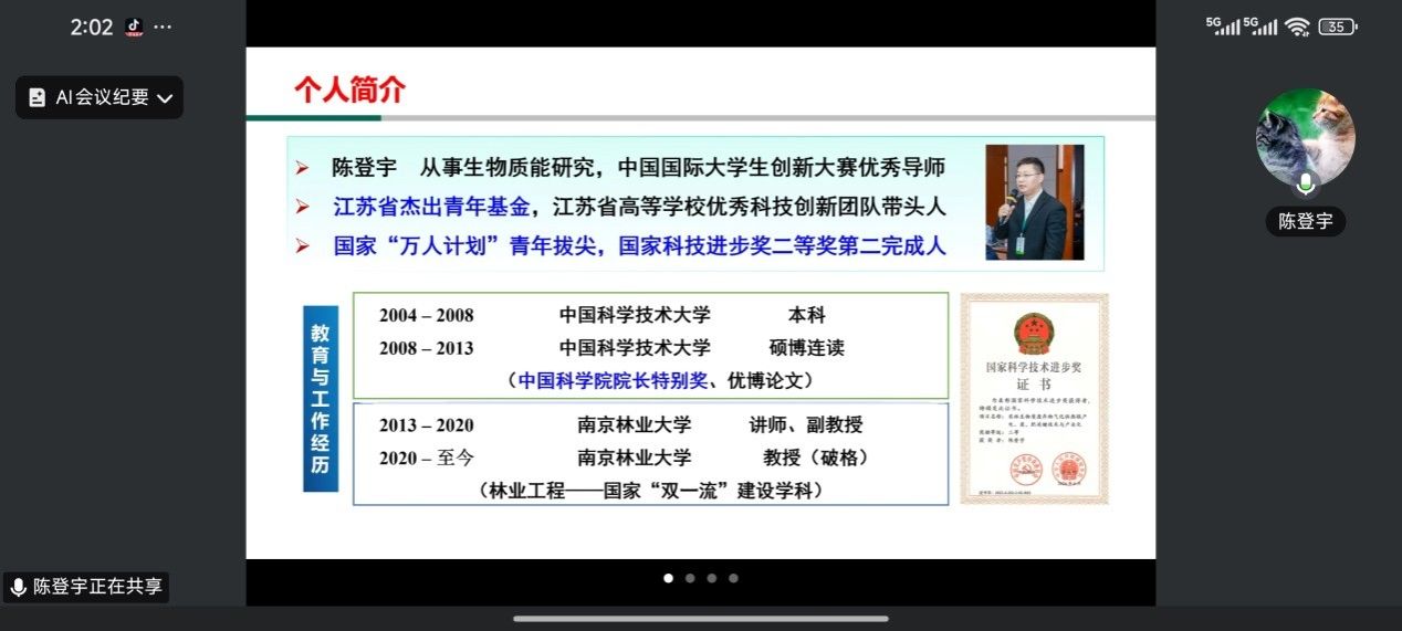 陳登宇,南京林業(yè)大學(xué)教授、博士生導(dǎo)師,國家重大人才工程青年項(xiàng)目入選者,江蘇省高等學(xué)校優(yōu)秀科技創(chuàng)新團(tuán)隊(duì)帶頭人,中國國際大學(xué)生創(chuàng)新大賽優(yōu)秀導(dǎo)師。主要從事生物質(zhì)熱解氣化領(lǐng)域的教學(xué)、科研和產(chǎn)業(yè)化推廣工作。主持國家重點(diǎn)研發(fā)計(jì)劃課題、江蘇省杰青等項(xiàng)目,在Angew. Chem. Int. Ed.、Renew. Sustain. Energy Rev.等期刊發(fā)表論文60余篇。研究成果入選2022年和2024年中國林草科技十大進(jìn)展,并得到國家部委采納推廣,獲國家科技進(jìn)步獎(jiǎng)二等獎(jiǎng)(排2)、中國產(chǎn)學(xué)研合作促進(jìn)會(huì)科技創(chuàng)新人物獎(jiǎng)、中國科學(xué)院院長特別獎(jiǎng)等獎(jiǎng)勵(lì)。