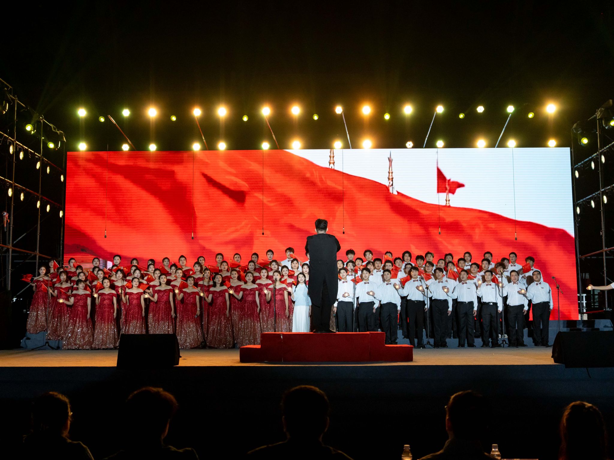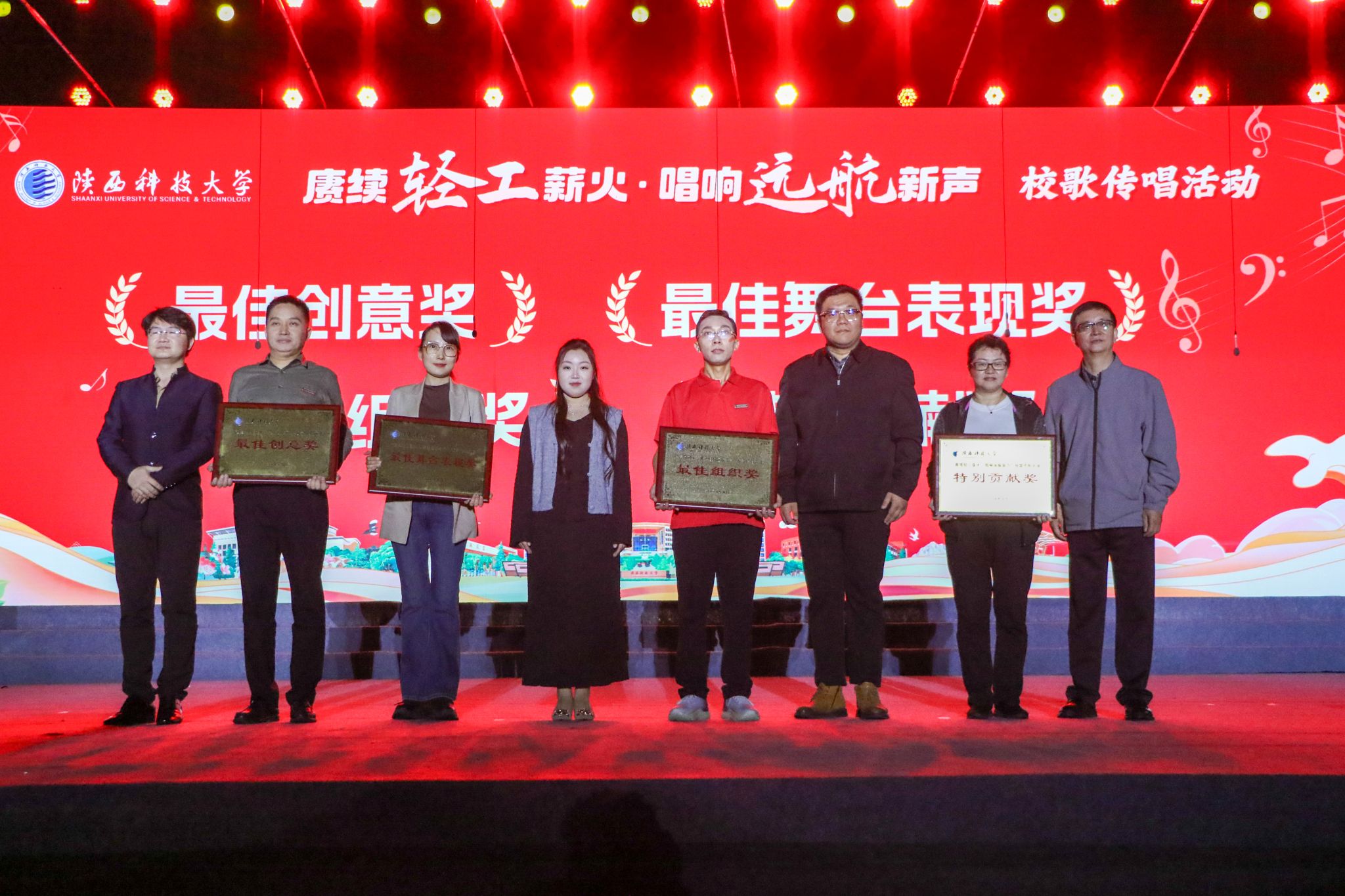為慶祝中華人民共和國(guó)成立76周年,涵育校園文化、弘揚(yáng)大學(xué)精神,9月29日晚,陜西科技大學(xué)在田徑場(chǎng)舉行“賡續(xù)輕工薪火·唱響遠(yuǎn)航新聲”校歌傳唱活動(dòng)。黨委書記樊建武,校長(zhǎng)黃劍鋒,黨委副書記李學(xué)軍,副校長(zhǎng)黃海峙、馬力,與各學(xué)院師生代表、2025級(jí)新生共同參與活動(dòng)。