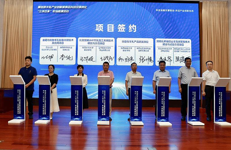 在渭南市,食品學(xué)院深度對接當(dāng)?shù)匮蛉楫a(chǎn)業(yè)優(yōu)勢,積極參與秦創(chuàng)原羊乳產(chǎn)業(yè)創(chuàng)新聚集區(qū)科技成果路演,并與重點(diǎn)龍頭企業(yè)紅星美羚乳業(yè)股份有限公司就“功能性羊乳產(chǎn)品研發(fā)”項(xiàng)目成功簽約,共同推進(jìn)高附加值、健康導(dǎo)向乳品關(guān)鍵技術(shù)攻關(guān)與產(chǎn)業(yè)化落地,助力區(qū)域乳業(yè)向功能化、高端化轉(zhuǎn)型升級。