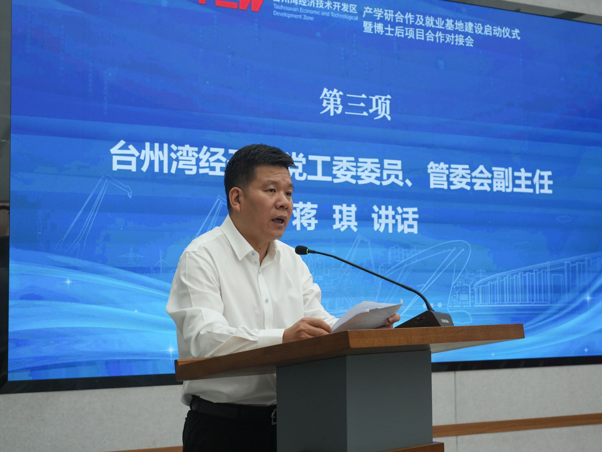 教務(wù)處、學(xué)生就業(yè)指導(dǎo)中心,臺(tái)州灣經(jīng)開區(qū)黨群工作部、臨海市科技局、人社局相關(guān)負(fù)責(zé)人及企業(yè)代表參加活動(dòng)。