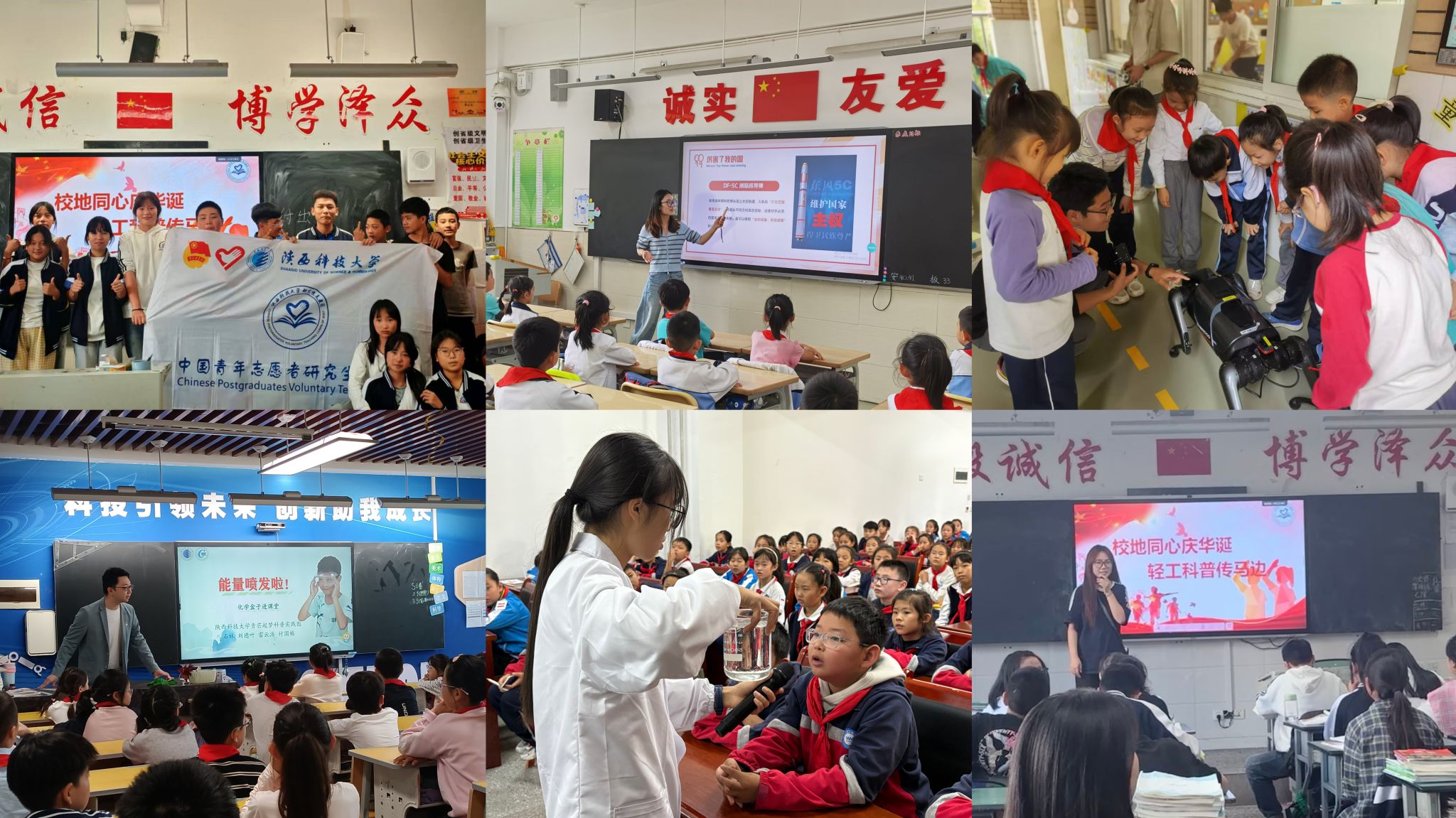 化工學(xué)院筑夢(mèng)領(lǐng)航研究生黨支部等多名優(yōu)秀黨員與新生代表走進(jìn)新興小學(xué)、經(jīng)開一小,帶去了以“趣味解鎖科學(xué)大門”為主題的化學(xué)科普秀,“大象牙膏”“火山噴發(fā)”“變色玫瑰”等趣味實(shí)驗(yàn)引得孩子們驚呼連連。機(jī)電學(xué)院研究生代表攜“紅心迎國(guó)慶·科創(chuàng)進(jìn)校園”活動(dòng)走進(jìn)經(jīng)開五小,通過(guò)展示了無(wú)人機(jī)、3D打印筆等研究生自主研發(fā)的科創(chuàng)作品,為小學(xué)生講述了錢學(xué)森、袁隆平等科學(xué)家的科研攻堅(jiān)與報(bào)國(guó)故事,讓拳拳愛國(guó)心、殷殷報(bào)國(guó)志在孩子們心中生根發(fā)芽。