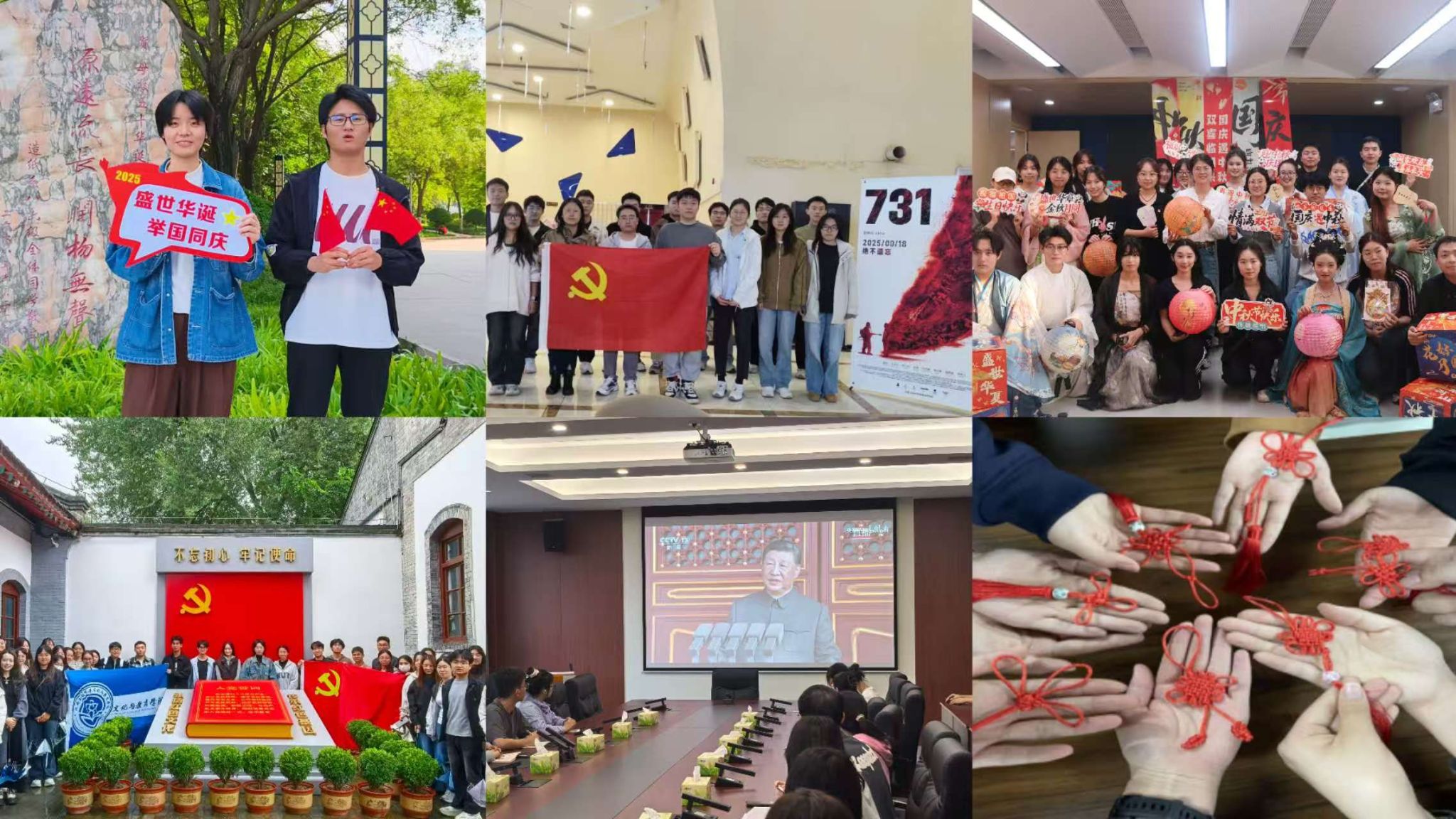 策劃特色活動(dòng),讓文化自信與愛國(guó)情感同頻共振。環(huán)境學(xué)院師生以真摯寄語(yǔ)與國(guó)旗合影表達(dá)對(duì)祖國(guó)的熱愛,環(huán)境功能材料黨支部通過(guò)“巧手編織中國(guó)結(jié)”黨日活動(dòng)教育研究生黨員感受非遺魅力,堅(jiān)定文化自信。食品學(xué)院以光影、音樂為載體,開展攝影大賽捕捉愛國(guó)表白瞬間,組織紅歌快閃點(diǎn)燃愛國(guó)熱情。數(shù)學(xué)學(xué)院融合“場(chǎng)景還原+任務(wù)驅(qū)動(dòng)+自由體驗(yàn)”模式,以古風(fēng)元素打造溫馨雅致的活動(dòng)氛圍,讓研究生在傳統(tǒng)文化與紅色精神的碰撞中,收獲別樣的雙節(jié)記憶。