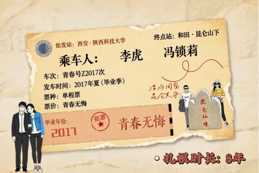 幾乎沒有猶豫,李虎毅然解除了國企協(xié)議。兩張簽往和田的就業(yè)協(xié)議,將“畢業(yè)即分手”的憂慮,化作了“畢業(yè)即相守”的篤定。2017年7月18日,前往和田的列車自西安站駛離,李虎與馮鎖莉的愛情和理想,終在祖國的西陲找到了交匯點(diǎn):新疆和田。