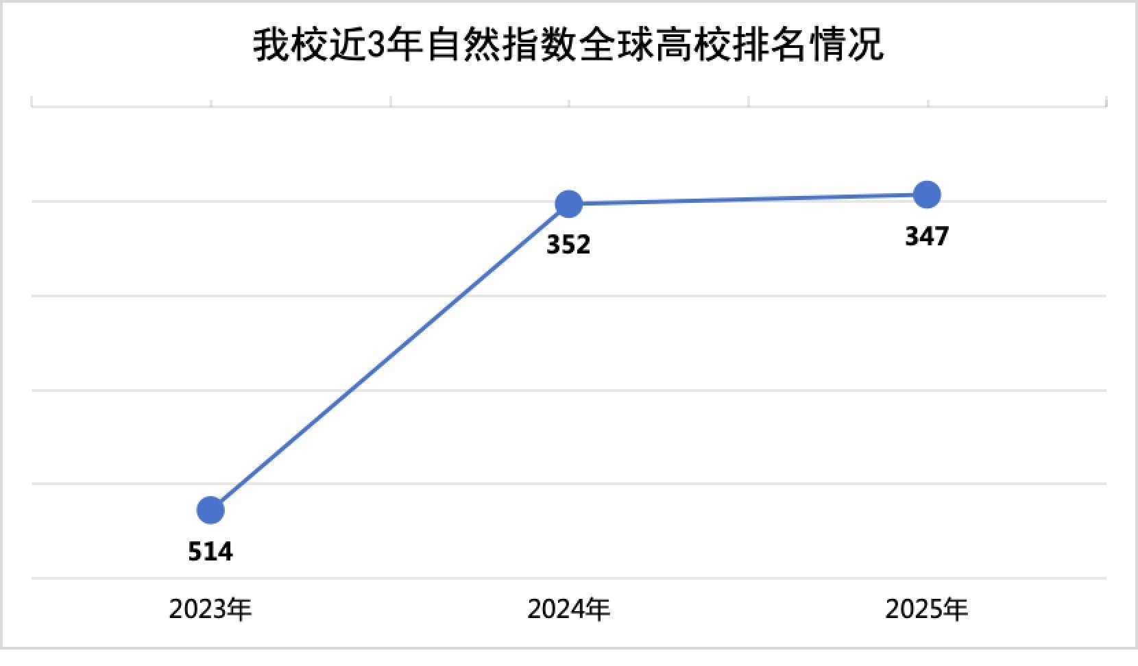 近三年,我校自然指數(shù)全球高校排名持續(xù)上升。2023年至2025年,共計(jì)上升167位,論文數(shù)從54篇增加至107篇。學(xué)校第三次黨代會(huì)以來(lái),通過(guò)深化多學(xué)科交叉融合創(chuàng)新,學(xué)科影響力不斷提升,學(xué)校高質(zhì)量發(fā)展取得新進(jìn)展。