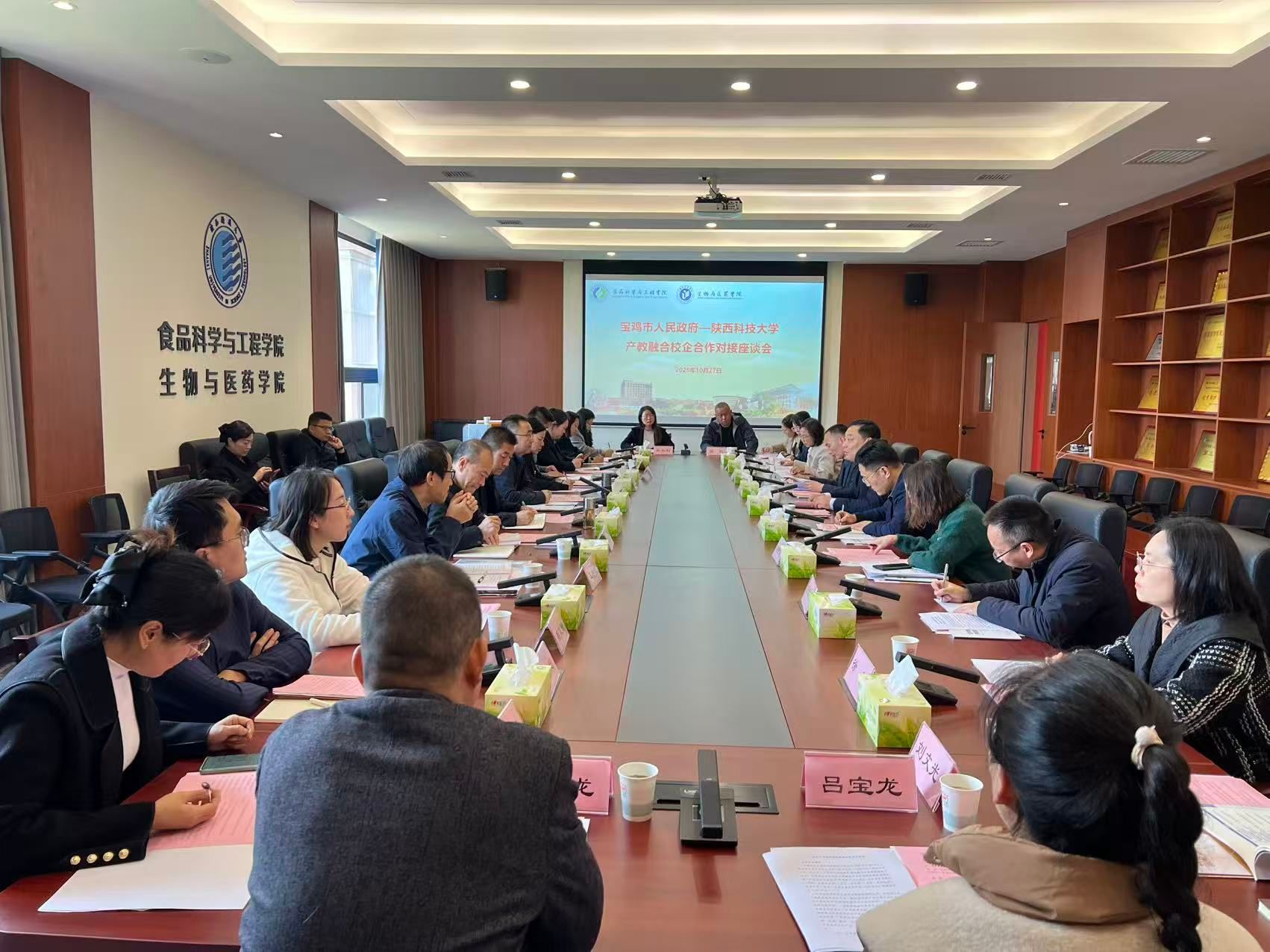 10月27日下午,寶雞市人民政府副秘書長趙寶奇率市國資委、農(nóng)業(yè)農(nóng)村局、科學(xué)技術(shù)局等相關(guān)部門負(fù)責(zé)同志及院校、企業(yè)代表一行19人蒞臨食品學(xué)院,開展產(chǎn)教融合校企合作對接活動。副校長費(fèi)貴強(qiáng)會見趙寶奇一行。食品學(xué)院黨委書記張凱凱、院長李國梁、前沿科學(xué)與技術(shù)轉(zhuǎn)移研究院副院長李志如及相關(guān)教師代表參加座談。會議由食品學(xué)院副院長姚曉琳主持。