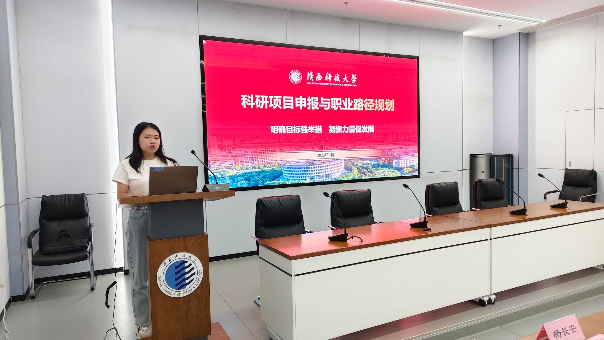 黨梓睿以“科研項目申報與職業(yè)路徑規(guī)劃”為題作報告,清晰梳理國家、陜西省、學(xué)校三級人才計劃構(gòu)成的梯次化發(fā)展體系,精準(zhǔn)闡釋學(xué)校為助力教師申報人才項目、規(guī)劃長遠(yuǎn)職業(yè)發(fā)展所提供的全方位支持政策,為教師厘清了職業(yè)晉升通道。