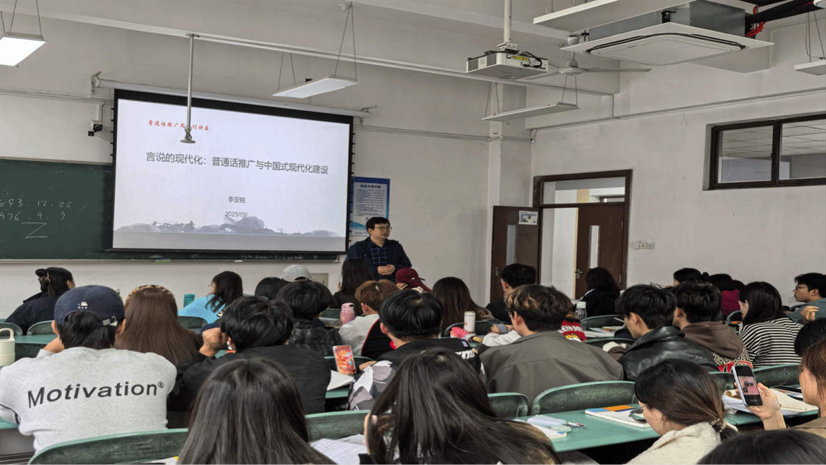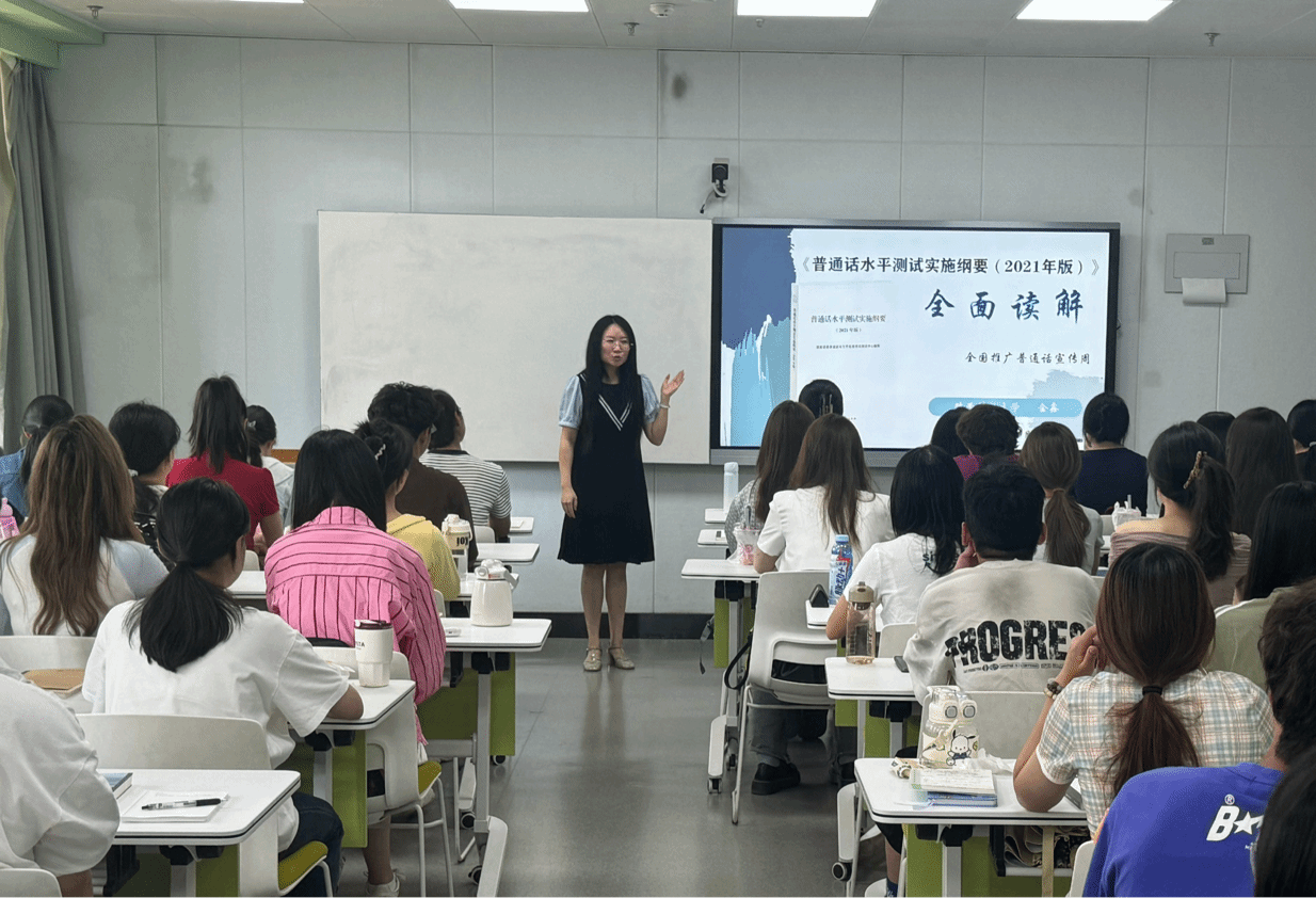 校內(nèi)活動百花齊放,涌現(xiàn)推普潮。舉辦《言說的現(xiàn)代化:普通話推廣與中國式現(xiàn)代化建設(shè)》《普通話水平測試實施綱要讀解》專題講座;為民族生定制《說好普通話,融入新校園》主題報告,助力民族學子快速適應校園生活。中華經(jīng)典誦寫講基地舉辦了“推廣普通話,傳承抗戰(zhàn)精神”主題朗誦會,在宣傳推廣普通話和朗誦藝術(shù)的同時,進一步提升學生規(guī)范用語意識和社會責任感。校團委以“青春為中國式現(xiàn)代化挺膺擔當”為主題,組織開展了“聲誦中國”經(jīng)典作品誦讀活動。普通話測試站緊扣推普周主題,組織師生以規(guī)范用語講述反法西斯斗爭故事,通過生動敘事傳承紅色基因,同步多渠道宣傳發(fā)動,吸引超千名師生報名普通話水平測試,實現(xiàn)“以測促學、以學促用”。