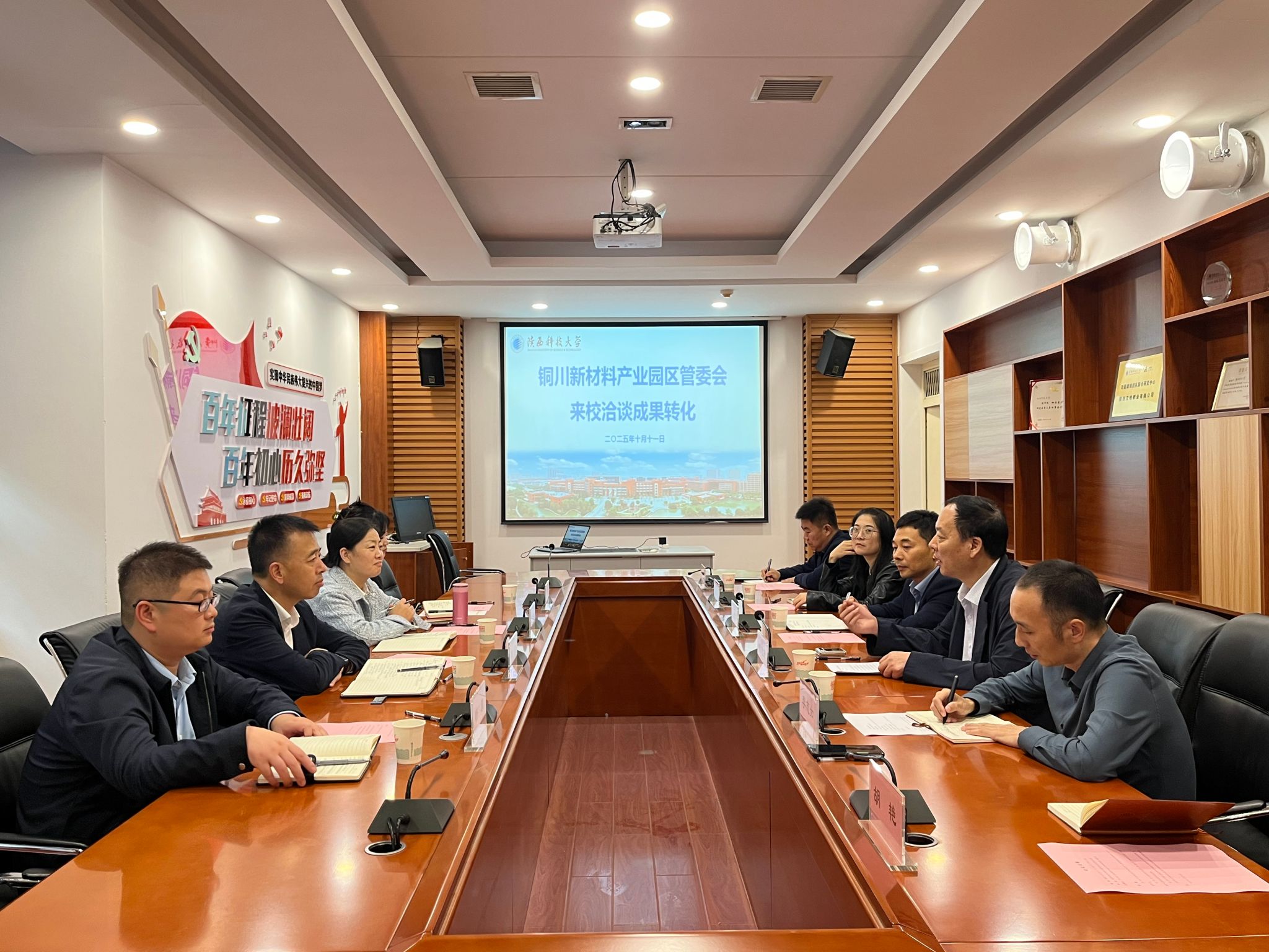 楊軍對(duì)學(xué)校近年來取得的發(fā)展成就表示贊賞,并介紹了銅川新材料產(chǎn)業(yè)園的區(qū)位優(yōu)勢(shì)與產(chǎn)業(yè)發(fā)展現(xiàn)狀。他強(qiáng)調(diào),當(dāng)前園區(qū)正處于產(chǎn)業(yè)轉(zhuǎn)型升級(jí)的關(guān)鍵時(shí)期,企業(yè)對(duì)先進(jìn)科技成果的需求日益迫切,亟需通過技術(shù)引進(jìn)推動(dòng)產(chǎn)業(yè)提質(zhì)增效。希望以此次對(duì)接為契機(jī),與學(xué)校建立長(zhǎng)期穩(wěn)定的合作關(guān)系,共同推動(dòng)銅川新材料產(chǎn)業(yè)實(shí)現(xiàn)更高質(zhì)量發(fā)展。