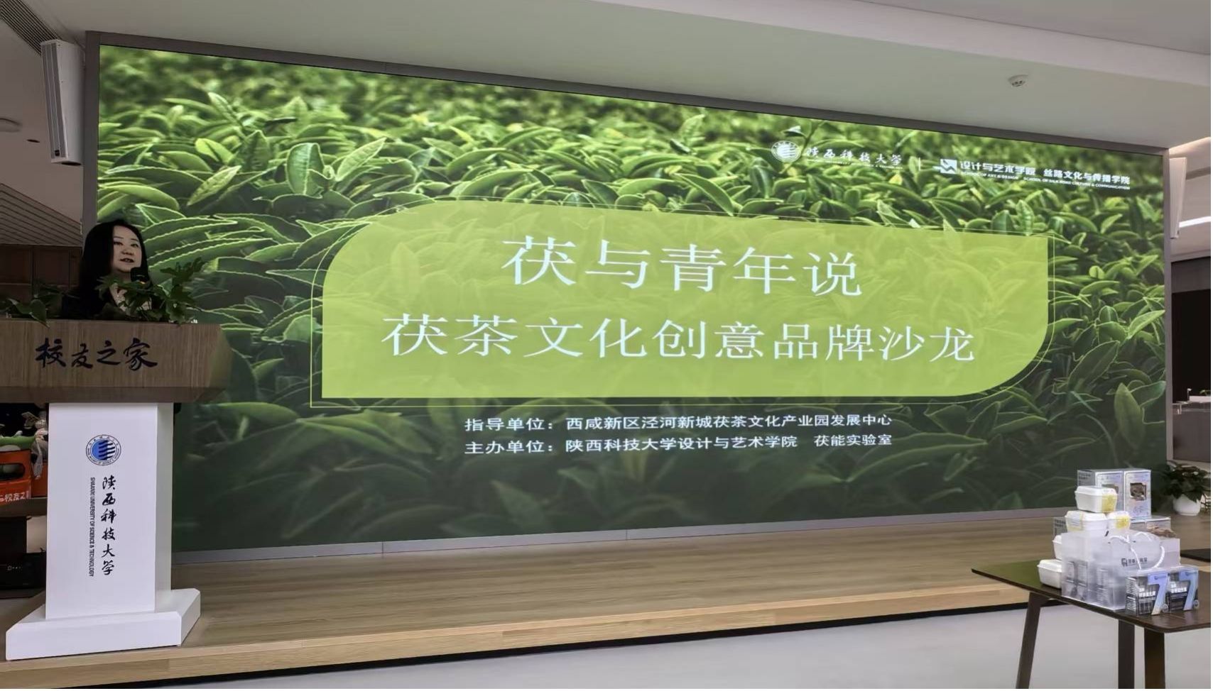 10月16日下午,“茯與青年說——茯茶文化創(chuàng)意品牌沙龍”在陜西科技大學(xué)校友之家舉行。出席本次活動的有西咸新區(qū)涇河新城茯茶文化產(chǎn)業(yè)園發(fā)展中心主任黨其雷、陜西冰峰飲品、陜西藝術(shù)精釀等知名品牌代表,設(shè)計與藝術(shù)學(xué)院副院長賀雪梅、副院長吉平以及視覺傳達(dá)設(shè)計專業(yè)師生。
