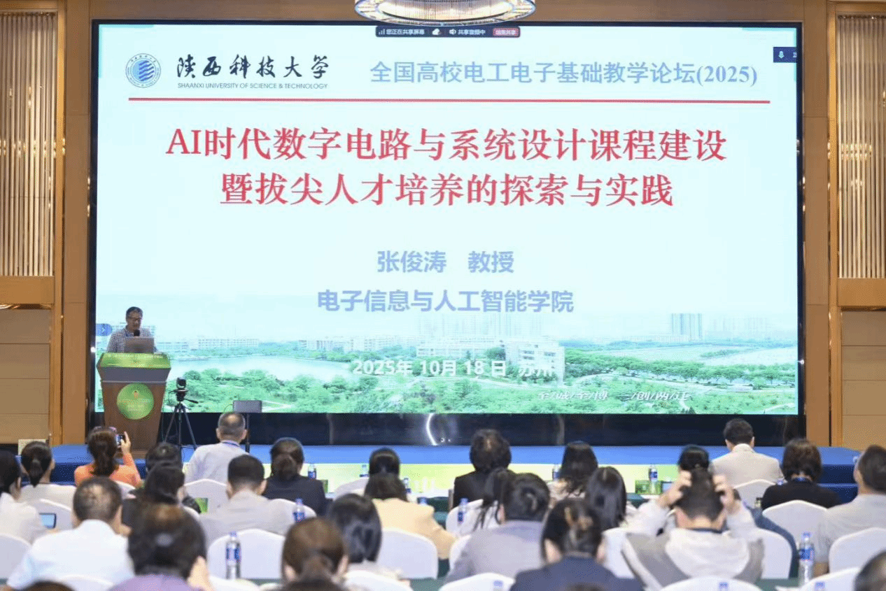 10月18至19日,第二屆全國高校電工電子基礎(chǔ)教學(xué)論壇在蘇州召開,電智學(xué)院張俊濤教授受邀以“AI時代數(shù)字電路與系統(tǒng)設(shè)計課程建設(shè)暨拔尖人才培養(yǎng)的探索與實(shí)踐”為主題做專題報告,報告受到與會教師的一致好評。