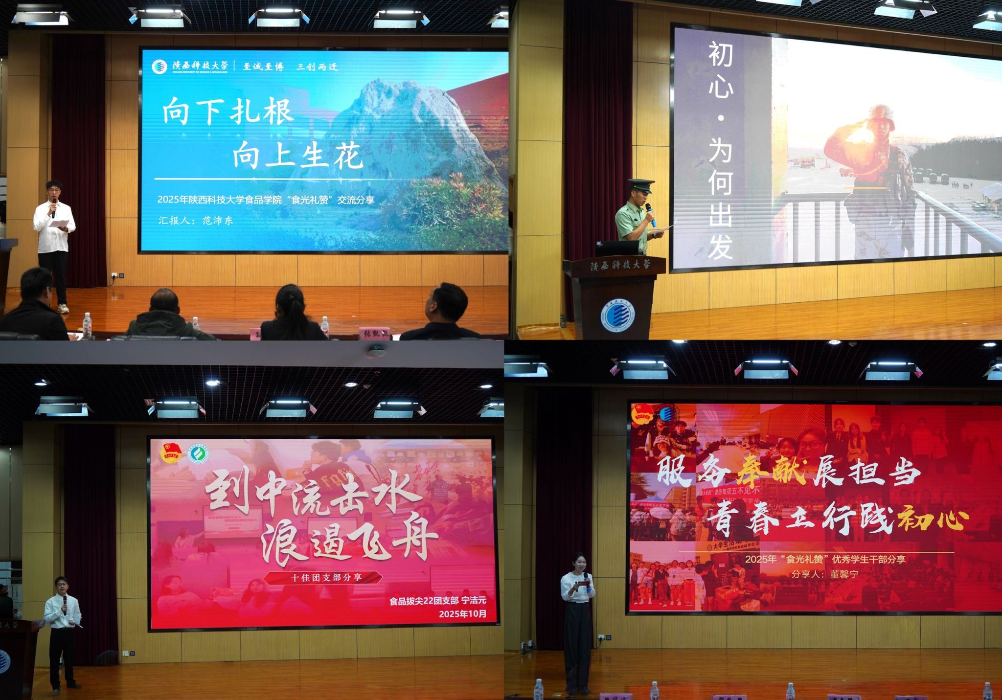 活動(dòng)以“食光啟航 砥礪前行”為主題,設(shè)立“食光”模范獎(jiǎng)、“食光”拼搏獎(jiǎng)、“食光”衛(wèi)國(guó)獎(jiǎng)、“食光”凝聚獎(jiǎng)、“食光”卓越獎(jiǎng)、“食光”桃李獎(jiǎng)等十余個(gè)類別的獎(jiǎng)項(xiàng),集中表彰上一年度表現(xiàn)優(yōu)秀的典型個(gè)人和先進(jìn)集體。優(yōu)秀學(xué)生代表董馨寧、張思雯、三永隆、范沛東和優(yōu)秀宿舍、十佳團(tuán)支部等先進(jìn)集體代表分別分享德智體美勞全面發(fā)展的青春故事及集體建設(shè)經(jīng)驗(yàn)。