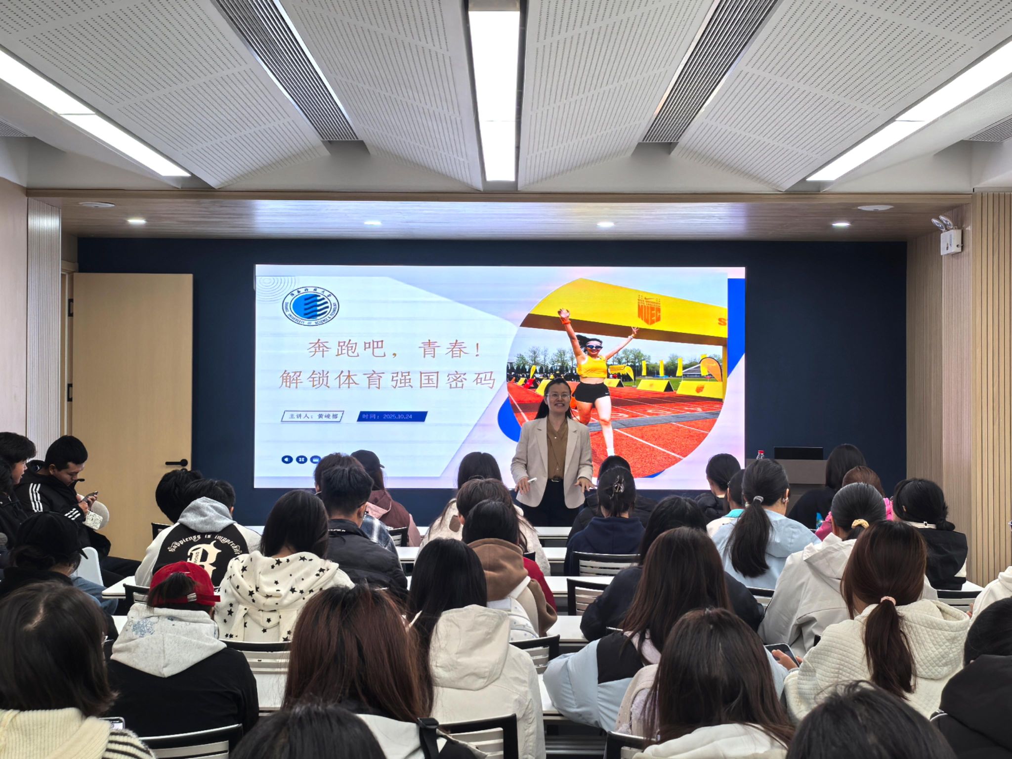 10月24日,學(xué)科建設(shè)辦公室主任黃峻榕以“奔跑吧,青春!——解鎖體育強(qiáng)國密碼”為題,為食品學(xué)院大一新生講授“加快建設(shè)體育強(qiáng)國”專題思政課。