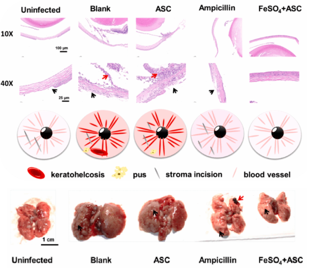 鐵基抗菌劑在小鼠細(xì)菌性角膜炎模型中表現(xiàn)出卓越治療效果,既治愈被感染的小鼠眼球傷口,又有效阻止肺部感染