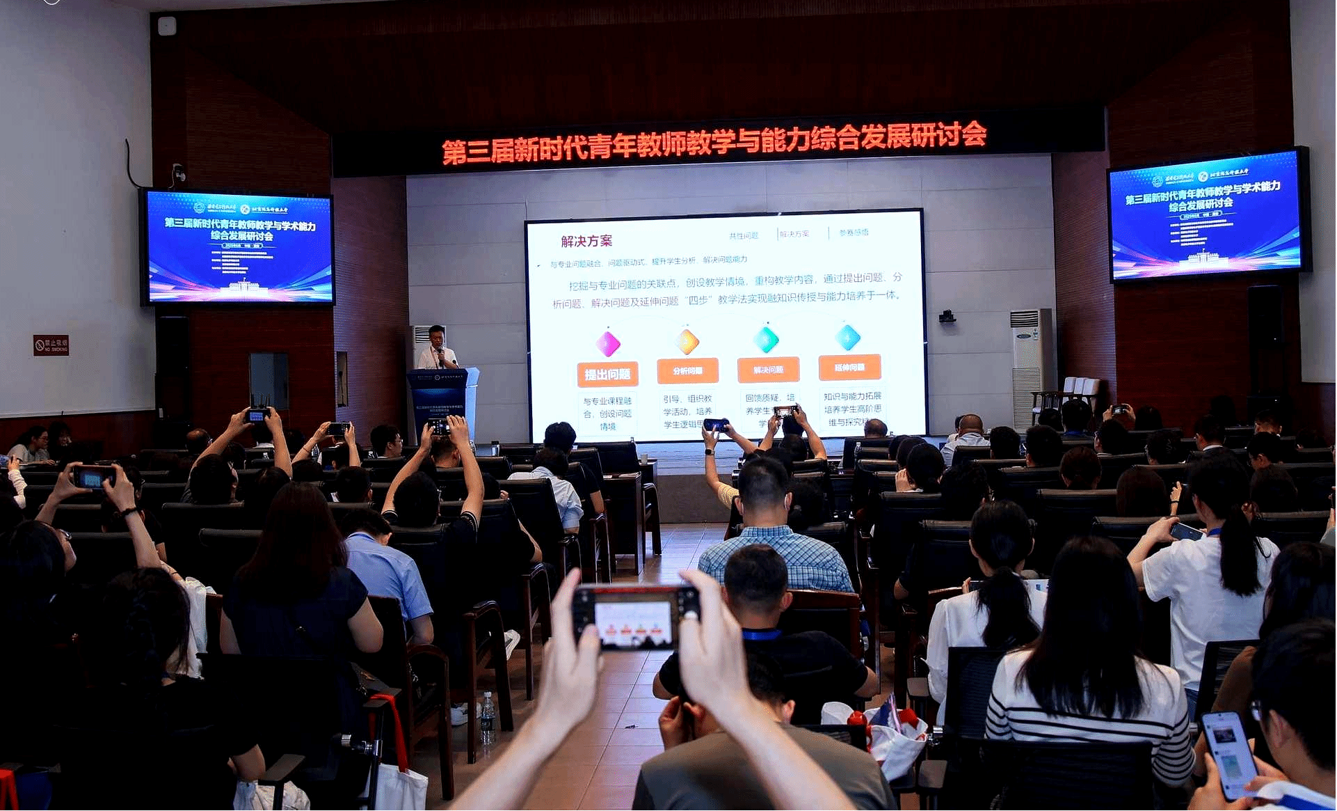 此次研討會(huì)電智學(xué)院高度重視、多方協(xié)調(diào)、全力支持,王進(jìn)軍副教授認(rèn)真準(zhǔn)備。作為第五屆、第六屆全全國(guó)高等學(xué)校電子信息類(lèi)專(zhuān)業(yè)青年教師授課競(jìng)賽一等獎(jiǎng)獲得者,他從教學(xué)內(nèi)容選取、教學(xué)設(shè)計(jì)、教學(xué)組織與實(shí)施、現(xiàn)場(chǎng)呈現(xiàn)等方面在大會(huì)上分享了自己參賽感悟;同時(shí)結(jié)合授課競(jìng)賽并從電子信息類(lèi)專(zhuān)業(yè)物理基礎(chǔ)課程的共性特點(diǎn)、遇到的教學(xué)問(wèn)題以及解決方案分享了自己對(duì)教學(xué)思考與實(shí)踐,引起了參會(huì)教師的共鳴。